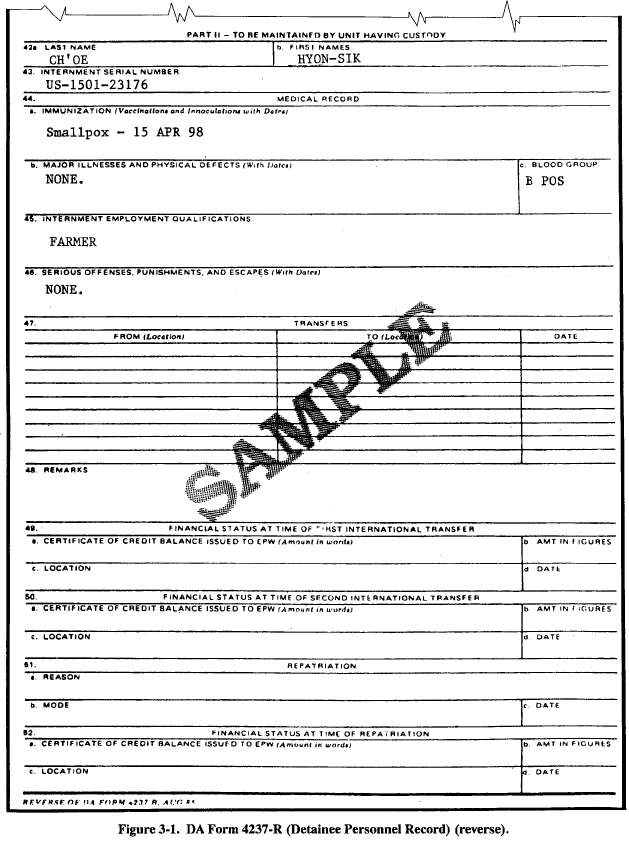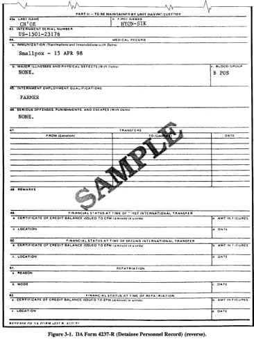 Figure 3-6. DA Form 2662-R (United States Army EPW Identification Card). Some reasons for termination are --
