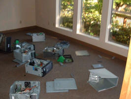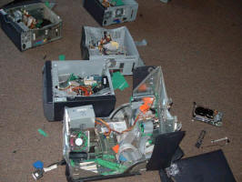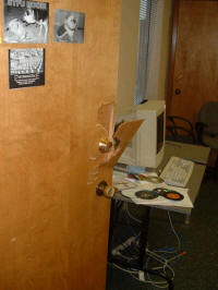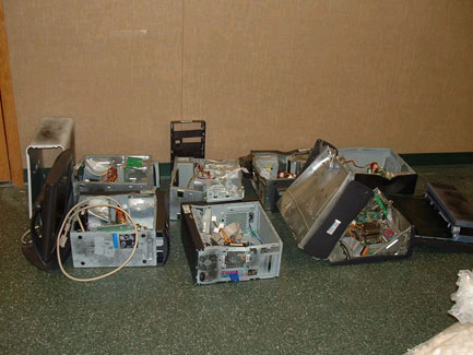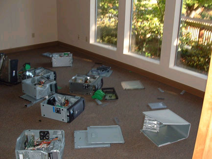 FTW Crippled But Not Dead © Copyright 2006, From The Wilderness Publications, www.fromthewilderness.com. All Rights Reserved. This story may NOT be posted on any Internet web site without express written permission. Contact [email protected]. May be circulated, distributed or transmitted for non-profit purposes only. July 5th, 2006 4:09pm [PST], ASHLAND – Sometime after 7:30 PM on the evening of Sunday June 25, 2006, an unknown number of suspects entered the FTW offices by means of two passkeys. Once inside, a sledgehammer was used to smash through four solid-core doors secured with deadbolt locks to gain entry to our webmaster’s office, my office, the administrative office and a storage area. All seven FTW computers were ripped or disconnected from peripherals and transported to a central unoccupied area of the building where their covers were unscrewed and removed. After the covers had been removed, all seven computers were smashed with sledgehammers. My monitor was also smashed at my desk. The computers were totally destroyed. There are suspects and the Ashland, Oregon police department (APD) is conducting an active criminal investigation. For that reason I am not at liberty to either discuss or disclose certain details, especially the extent of damage to hard drives, back up status before the burglary, or whether data from damaged hard drives is, or will ever be, recoverable. To date I have been impressed by the cooperation and thoroughness shown by APD and I intend to cooperate with them fully and provide whatever assistance I can as their investigation continues. In previous statements I have mentioned a meth ring operating locally and have also stated that I had seen no direct evidence of US government involvement. Those statements are still correct, although I will add that I also have not ruled out US government involvement. The only way to describe the damage is that it has been utterly devastating from business, emotional and professional perspectives. My residence was vandalized a week before the burglary. As I write this report, a full ten days after the burglary, we are still unable to download orders from the internet, and we are also unable to ship any products. We have a large number of orders out there but unfortunately we cannot get any of that money into our checking account at present. We are insured and it appears as though most of the losses will be covered. However, there are going to be significant cash outlays required to resume even a semblance of normal operations before insurance reimbursement takes place. This includes expensive data recovery from certain damaged hard drives. For the time being, please send any donations to our mailing address, 655 Washington St., Ashland, OR 97520, Please indicate if you would like your donation returned once we have received reimbursement from our insurance carrier. We do need all the help we can get. For new subscribers and those concerned about interruption of our services please be advised that, as time permits, we will make arrangements to extend subscriptions to make up for any lost time. I have no words to describe the viciousness of this attack. No other valuables were taken and none of our other furnishings or equipment was destroyed. It is apparent that destroying data stored in our computers was the primary objective in this crime. Current estimated damages are in excess of $20,000. Please do not expect us to be able to immediately respond to emails. We are short-staffed and everyone here is doing a great job under the obvious and very unpleasant stress. We have desperate need for a bookkeeper in house to help reconstruct financial records and restore normal cash flow operations. Our problem is finding one willing to work in our environment. Those of you who have been loyal FTW fans and subscribers know of the many, many challenges we have had to face over the years. I am now 55 years old and have been fighting this fight for a long time. This is a time for a rethinking of all of our priorities. The one question I and the rest of FTW is trying to answer is how can we best serve you without experiencing the same battles again. As the world around us and within the United States grows darker, I intend to use this time to evaluate where we go from here. The first thing I need to do is to consult closely with our writers and several key advisors and friends. FTW is not dead but I must honestly tell you that we are on life support at the moment. As we restore our operations, piece by piece, we will resume the publication of new stories. We promise to finish the Pat Tillman series. Other than that, as those of us who have made FTW work arrive at a plan, we will keep you advised. In the meantime, please let these photographs speak for themselves. Send us whatever help you can, and continue to give us the same loving patience you have always given us as these brutal and difficult challenges have arisen. These are tough times for everyone. Michael C. Ruppert