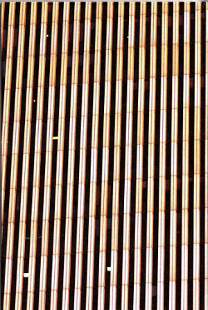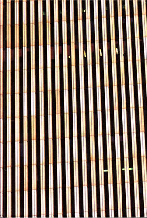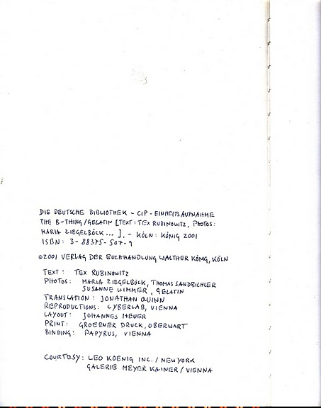 THE LONELINESS OF RAFFIA. THE GROUP GELATIN IS COMPRISED OF FOUR YOUNG MEN. WHEN ONE OF THEM SPEAKS OR SMILES YOU CAN SEE A GAP IN HIS TEETH AND ONE OF THEM HAS BROKEN THE TIP OF ONE HIS INCISORS. I ONCE SAW ONE OF THEM IN A LIGHT BLUE TOWELLING ROMPER SUIT, AND I DON'T KNOW THE FOURTH AT ALL. THEY ALL HAVE SOMETHING UNAIRED ABOUT THEM AND SO-CALLED 'EARLY MORNING HAIRDOS! I ASSUME THIS GOES FOR THE FOURTH ONE TOO. I KNOW THAT THE ONE WITH THE CHIPPED TOOTH ONCE DROPPED A VAST COFFEE CUP AND IT BROKE INTO A THOUSAND PIECES. HE PAINSTAKINGLY GLUED THIS MONSTROSITY (IT WAS EASILY BIG ENOUGH TO HOLD TWO ORANGES) BACK TOGETHER, PIECE FOR PIECE LIKE A JIGSAW PUZZLE. HE WAS PROBABLY VERY ATTACHED TO THE VESSEL HAVING DRUNK OUT OF IT WHEN HE WAS A BABY, OR HAVING BEEN BATHED IN IT. MAYBE THE DIY ASPECT GRABBED HIM IN THE CASE OF THAT RATHER WORTHLESS OBJECT. EVEN PITY? THE SISYPHEAN ASPECT OF THE TASK WITH ITS IMPLICIT DOOM TO FAILURE? IF JUST THE TINIEST CHIP IS MISSING THAN IT IS NO GOOD FOR DRINKING OUT OF ANYMORE. "THE LONELINESS OF RAFFIA" IS A LITTLE KNOWN SHORT STORY BY FRANZ KAFKA AND, AS THE TITLE IMPLIES, IT'S ABOUT WHAT GOES ON IN SOMEONE'S MIND WHEN THEY GET IMMERSED IN A KIND OF SOLIPSISM, A TIME-CONSUMING EXPERIMENT WITH UNKNOWN RESULTS. WHILE KAFKA'S NARRATIVE AN INDIVIDUAL WANDERS THROUGH THE LABYRINTH OF POSSIBILITIES ALONE, THE GENTLEMEN OF GELATIN HAVE ONE ANOTHER. THEY CAN DELEGATE, DISCUSS, OR SIMPLY GO TO THE LOO IN EVERY PHASE OF THEIR PROCESSES, LIKE THE BEATLES. LONELINESS IS NOT AN ISSUE THEN IN THEIR PROCESS, OR SO I ASSUME. BUT THE SUBVERSIVE ELEMENT, WANTING TO GO THROUGH THE WALL HEAD FIRST, THEIR RESOLUTENESS, THEIR ECCENTRICITY ARE ALL SHARED WITH THE KAFKA'S FICTIONAL FIGURE. THE HOLE IN HANNOVER AT THE EXPO, WHERE ONE COULD DIVE FIVE METERS DOWN TO ARRIVE AT A KIND OF JUNK ROOM, BUT ONLY IF YOU HAD YOUR SWIMMING TOGS WITH YOU; A LITTLE HOUSE IN A GALLERY IN VIENNA WITH AN ELEVATOR, STAIRS ROOMS -- A ROUGH PIECE OF CARPENTRY HELD TOGETHER WITH PLASTICINE. IT WAS WOBBLY AND CROOKED WITH SHELVES, AND ON THEM WHERE MUTILATED STUFFED ANIMALS THAT HAVE BEEN PICKLED IN OIL IN VAST JARS LIKE SOUR VEGETABLES. A TUNNEL FROM ANOTHER GALLERY (IN AUSTRALIA) RUNNING RIGHT UNDER THE ROAD. UNDERNEATH A PIZZARIA AT THE OTHER SIDE YOU COULD HEAR THE PIZZA NOISES, THE EXTRACTOR HOOP WAS AN EXPONENT. GUESTS WERE GIVEN BOTTLES OF BEER LIKE BRICKLAYERS, WHICH IRRITATED THE SMARTER PEOPLE IN THE CROWD. AND THEN THE SURGICAL INTERVENTION IN THE WORLD TRADE CENTER IN NEW YORK CITY. EVERYTHING TOP SECRET AND ILLEGAL OF COURSE. IN DAYS HAD TEDIOUSLY SMUGGLED INTO THE BUILDING UNDER THEIR PULLOVERS, THEY CONSTRUCTED A FUNCTIONING LOAD BEARING BALCONY. IN A LONG COMPLICATED PROCESS THEY SCRATCHED PUTTY FROM THE TALL HEAVY WINDOW, WHICH COULDN'T BE OPENED, THEN THEY EXTRACTED IT. USING SUCTION PADS, SHUNTED THE BALCONY OUT, POSED ON IT AT 6 IN THE MORNING AND HAD THEMSELVES PHOTOGRAPHED THERE FROM A HELICOPTER FOR THEIR NEAREST AND DEAREST BACK HOME. THEY KEPT VERY MUM ABOUT IT ALL, BECAUSE IF WORD HAD CREPT OUT ABOUT THEIR COUP THEY COULD HAVE BEEN FINED VERY HEAVILY FOR SABOTAGING A NATIONAL TREASURE EVEN IF IT WAS BUILT BY A JAPANESE. INCIDENTALLY AS PROOF THAT THEY WERE THERE THERE IS NOW A PIECE OF OLD CHEWING GUM STUCK TO THE OUTSIDE OF THE BUILDING AT A DIZZY HIGHT. THE NEXT THING THAT THEY ARE PLANNING IS TO KNIT A KILOMETRE LONG HARP AND HAVE IT DROPPED SOMEWHERE. ONE QUESTION REMAINS UNANSWERED THOUGH WHY DIDN'T THE ONE WITH THE CHIPPED TOOTH GLUE THE MISSING BIT BACK ON AGAIN? TEX RUBINOWITZ, FEBRUARY 2001.