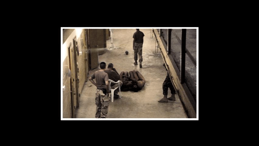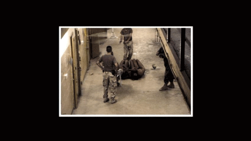 To show the spectators this would be done to anybody who breaks the rules. Abu Ghraib was mortared almost every day. Our people were dying there, so my frustration level was really high, and when I heard about the detainees that raped the little boy, I just completely went nuts. Right before I left I was so pissed off that I had a bottle of water ,and I splashed some of them just to show, pretty much, my hate. At one point there was a nerf ball brought in. Everybody was throwing to each other, playing catch. Here, I'm going to get it.