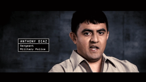 1 oga in 1B Shower not to be used until OGA is moved out 1A 34/5 04 Nov 2003 [ANTHONY DIAZ, SERGEANT MILITARY POLICE] It was early in the morning, like 4:30, around that time, so everything was silent. OGAs were, "Okay, we have another special prisoner here." He was wearing only a shirt. So he came in, he was shackled, handcuffed and everything, with a hood on. When he came in, we didn't ask nobody who this guy was, what he did. That wasn't our business. Two soldiers took him straight to the shower where he was interrogated by one OGA. He was there quite a while, I think he was there about an hour and a half. All of a sudden the OGA guy opened the door and said, "Can you help me here? Tie him a little higher, because he don't want to cooperate." Now, he's, I guess, you know he was just sagging. [JEFFREY FROST, SPECIALIST MILITARY POLICE] There were some CIA guys there, or I think they are CIA, well, yeah, they were, but at the time we didn't know what Agency they were with. They asked us to handcuff him to the window so he has to hold himself up 'cause he was playing Possum. And I'm just holding him by the jumpsuit. I'm not holding him under the arms or anything. And his jumpsuit is riding up his crotch and I commented and said, "Damn, this guy's pretty good at playing Possum 'cause I know I'd be howling like whatever with this riding up my crotch like his jumpsuit was." Everybody just kind of laughed and nobody really thought anything of it, and I remember how far back his arms were going, and it was just really an awkward position, and I again was like, "You know, this guy is pretty damn good 'cause his arms are almost about to break and I'm surprised they haven't broken. I'm waiting for the pop." And then all of a sudden, just like, I guess blood started pouring out of his nose and mouth, so we realized that something was wrong. [ANTHONY DIAZ, SERGEANT MILITARY POLICE] That's when I went and raised the hood. And that's the first time I saw his face. I was surprised because his face was totally messed up. He's got a huge black eyes with bruises everywhere. And it was like, "Whoa! What happened to this guy?" And one of his eye was open, so I kind of did the thing like here so he could move his eyes, and nothing, he was just looking down like this. And I was like, "Whoa! This guy is not even alive."
