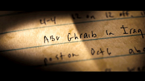 [SABRINA HARMAN, SPECIALIST MILITARY POLICE] October 1st, 2003: First day at the prison. It's 9:00 p.m. and we can hear shots. No white lights are allowed to be on at night. No leaving the building after dark. I hope we aint here long. We drove in and two helicopters were landing, taking prisoners off. I was scared of helicopters because of the dream. The tail was swaying back and forth, and a huge flame shot out and it exploded. I have a bad feeling about this place. The prison is called Abu Ghraib. 30,000 people were murdered here. There is a chamber where these men were hung. I'm not sure about ghosts, but it is freaky. I'm hoping to be home for Christmas or soon after. I love you. Sabrina.