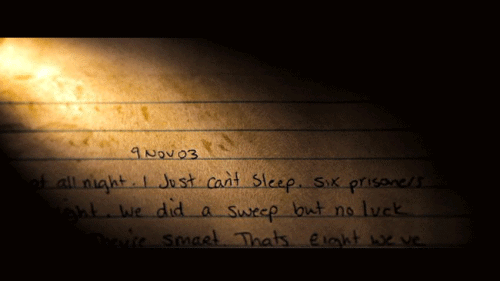 Two cameras actually caught him at the exact same time from two totally different angles. And again you see it where they have the seven-men stacked naked with the hoods over their heads. You actually see both of the cameras inside each of the pictures. It's not so much that you're there committing these acts of abuse. If you were in the pictures while this stuff was going on, you're going to be in trouble. Q. Big trouble? [BRENT PACK, ARMY SPECIAL AGENT, CRIMINAL INVESTIGATION DIVISION] If you make our President apologize to the world, I would say so, yeah. [SABRINA HARMAN, SPECIALIST MILITARY POLICE] I haven't slept all night. I just can't sleep. Six prisoners escaped last night. That's eight we've lost in three nights. Something bad is going to happen here. I hope I'm wrong. But if not, know I love you.