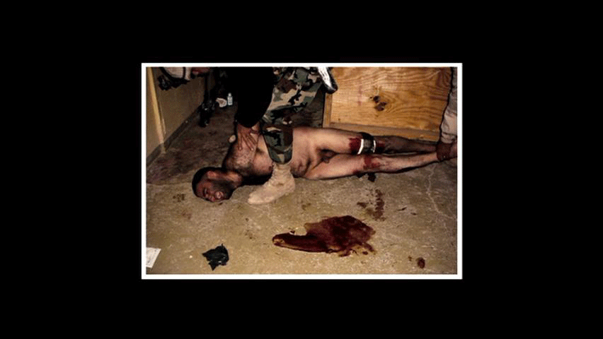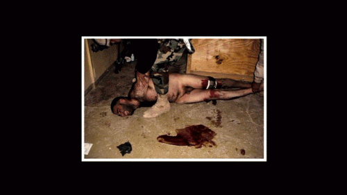 The Iraqi starts screaming and runs straight to Graner, and one of the guys lets his dog loose, enough to bite him in the leg. The guy is hysterical. The dog got another bite. Blood was everywhere.