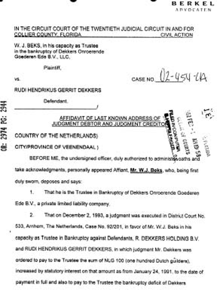 Protected by the FAA. Numerous serious violations, which would have grounded anyone else, were ignored by the FAA. The question is why.. A wanted man. As a result of criminal activates in his native Holland, including skipping out on hundreds of thousands of dollars worth of judgments, Dekkers is unable to return there. High tech smuggling. Using dummy `front' companies, Dekkers was caught, but never charged, with smuggling high technology components out of the U.S. by a multi-agency investigation in the mid-90's. |