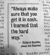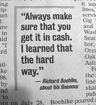 Boxes within boxes: Hilliard and Dekkers' brief-lived commuter airline, Florida Air, wasn't really Florida Air, but Sunrise Air, of Nevada, which wasn't really Sunrise Air, but Express Air of Utah, which was really Express Air of Page, Arizona. Unfit to fly. The Dept of Transportation regularly found Hilliard's various airline ventures to be dubious propositions. Stripping assets: The assets of an Orlando flight school were concealed inside Discover Air and transferred to Hilliard just before the flight school went bankrupt, taking with it the life savings of several hundred students. Friends in high places: Hilliard `bought' a plane from Truman Arnold, former chief Clinton fundraiser, but didn't arrange financing to pay for it until over a year later `The Company he keeps' pt II: Hilliard and Dekkers partner in Florida Air was Richard Boehlke, a participant in the spectacular $350 million "Mob-led" bust-out of union pension funds in Portland, Oregon, of what were called "mostly Mob-led unions." Packets of heroin bearing the name of Osama bin Laden.