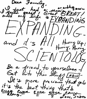 by Scientology-kills.org SCIENTOLOGY -- L. RON HUBBARD'S INCORRIGIBLE BRAINCHILD Susan Meister was introduced to Scientology in San Francisco in the autumn of 1970. By November, she was working at the San Francisco Org. She was an eager convert, and tried to persuade her parents to become Scientologists. She wanted to be close to the "Founder," and contribute to "Clearing the Planet," so in February 1971 she joined the Sea Org. By the end of the month she was aboard the "Flagship" Apollo. Her stay there was brief and tragic. On May 8, she wrote to her mother: Mother, Four days later, Susan Meister wrote this letter: Her last letter to her parents from the Apollo was dated June 1971. In it she thanked them for a birthday card, and a variety of gifts, including a new dress. She continued, showing the effect upon a young and impressionable mind Hubbard's obsession with the "great conspiracy" against him: I can't tell you exactly where we are. We have enemies who are profiring from peoples' ignorance and lack of self-determinism and do not wish to see us succeed in restoring freedom and self- determinism to this planet's people. If these people were to find out where we are located--they would attempt to destroy us. Therefore, we are not allowed to say where this ship is located. She once more urged her mother to read Hubbard's books, and take Scientology courses. Ten days after writing the letter, Susanwas dead. George Meister, Susan's father, was away from his Colorado home on a business trip when Guardian's Office Public Relations man Artie Maren phoned. George Meister met Maren the next day, and was presented with an unsigned "fact sheet" giving the Scientologists' account of events as a series of numbered statements. Meister told Aflie March that he wanted the body to be flown back to the U.S. for burial. Meister received a letter from Bob Thomas at the Church of Scientology in Los Angeles explaining that the "Panamanian" owners of the Apollo were not obliged to give information to the Church of Scientology. However,/he Apollo's captain, Norman Starkey, had offered to pay for a Christian burial in Morocco, but regretted that they would not pay for the body to be returned to the United States. George Meister, dazed by the news, decided to go to Morocco to try and verify the circumstances of his daughter's death. He was told he would be able to see the body in the morgue in Safi. He left for Morocco on July 14. Meister was met at the airport in Casablanca by Sea Org member Peter Warren, who escorted him to the Marhaba Hotel. Meister met the U.S. vice-consul, Jack Galbraith, and explained the purpose of his mission. During this meeting with Gaibraith, Warren phoned to say he would drive Meister the 120 miles to Sail. Warren said the Apollo was already past its scheduled departure date, but would wait a little longer, because of Meister's presence. Meister arranged to leave the following morning at 6:00 a.m., accompanied by Galbraith, Warren and a Sea Org girl called Joni. Their first stop in Sail was the police station. Meister says the police official he spoke to genuinely tried to help. He showed Meister a photograph taken aboard the Apollo, showing the dead girl. According to her father, Susan was "lying on a bunk, wearing the new dress her mother had made for her, her arms crossed with a long barreled revolver on her breast. A bullet hole was in the center of her forehead and blood was running out of the corners of her mouth. I began to wonder how Susan could possibly shoot herself in the center of her forehead with the long barreled revolver. She would have had to hold it with both hands at arms length. There were no powder burns on her forehead, which certainly would have been the case if the gun was against her forehead as it would have to be to shoot herself as the photograph appeared." The police said the revolver was not available for inspection. Meister was shown the police report, but it was in French, which neither he nor Galbraith spoke. Meister was told that the police were unwilling to release copies of either the report or their photographs. Meister and Galbraith went on to the hospital where Susan's body had been taken. During the autopsy her intestines and her brains had been removed. Meister says that Warren admitted that he had given permission, believing that Susan might have been on drugs. Meister asked to see the body, which he had been told was in a refrigerated morgue. To his amazement, he was told by a doctor that they did not know where the body was. The next day, with Warren and Joni still in attendance, they had an audience with the Pasha of Safi. The Pasha told Meister he could not have copies of the police report, or the photographs. He said he had transferred the records to the provincial capital, Marrakesh. When Meister pressed him to find the whereabouts of Susan's body, the Pasha told him the interview was over.Meister asked Warren if he could see Ron Hubbard. He knew that Hubbard's daughter, Diana, was about Susan's age. In Meister's own words: 'Passing the guarded gates into the port compound, we had our first look at Hubbard's ship, Apollo. It appeared to be old, and as we boarded it, the girls manning the deck gave us a hand salute. All were dressed in work type clothing of civilian origin. Most appeared to be young. Upon boarding we were shown the stern of the ship, which was used as a reading room, with several people sitting in chairs reading books. The mention of Susan seemed to meet disapproval from those on board .... We were shown where Susan's quarters were in the stern of the ship below decks where it appeared fifty or so people were sleeping on shelf type bunks. Susan's letter had mentioned she shared a cabin all the way forward with one other person. Next we were shown the cabin next to the pilot house on the bridge where the alleged suicide had taken place. It was a small cabin and appeared to be one where a duty officer might catch some 