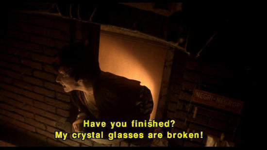 [Woman] Have you finished? My crystal glasses are broken!