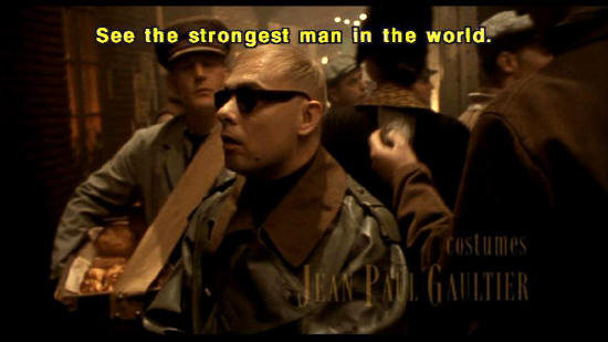 See the strongest man in the world. Look at those chains, made of the same steel costumes: JEAN PAUL GAULTIER as that used to lift -- directeur de la photographie: DARIUS KHONDJI [Illuminati] Yes, my friends,