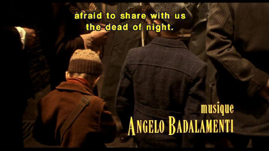 I know there are skeptics among you, afraid to share with us the dead of night. musique: ANGELO BADALAMENTI Be brave. Renounce your gift of sight. Pluck out your eyes. Come and join us. chef monteur: HERVE SCHNEID