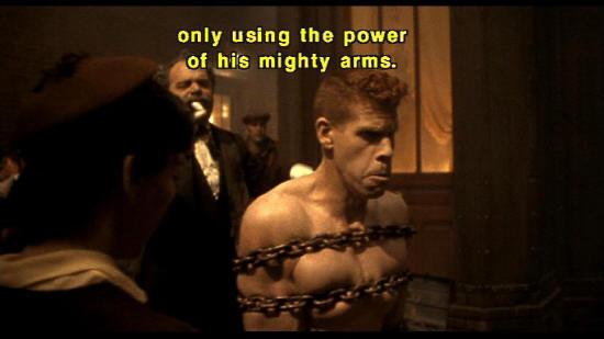 Help us build a better world. [Montruer] The crusher Bones is going to try once more to shatter steel only using the power of his mighty arms. Please, ladies and gentlemen, I want absolute silence effets speciaux: YVES DOMENJOUD, JEAN BAPTISTE BONETTO, OLIVIER GLEYZE, JEAN-CHRISTOPHE SPADACCINI