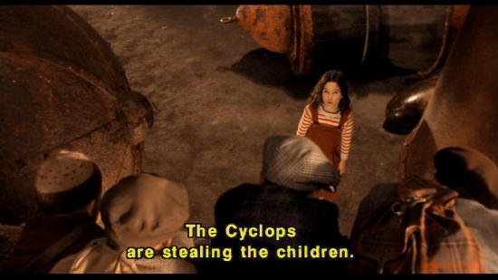 [Bouteille] Well, smarty, it wasn't nice of you to disappear. [Miette] I'm sorry, but incredible things happened to One and me. Pipo and [Jeannot] No kidding? [Miette] The Cyclops are stealing the children.