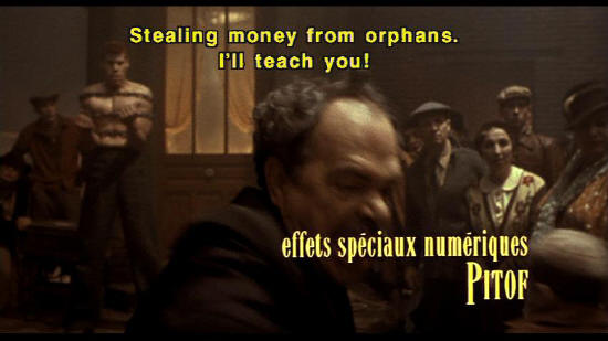 Little thief! Stealing money from orphans. I'll teach you! effets speciaux numeriques: PITOF Let go of that! images de synthese: PIERRE BUFFIN