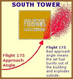 by Serendipity.com Table of Contents: "Why of course the people don't want war ... But after all it is the leaders of the country who determine the policy, and it is always a simple matter to drag the people along, whether it is a democracy, or a fascist dictatorship, or a parliament, or a communist dictatorship ... Voice or no voice, the people can always be brought to the bidding of the leaders. That is easy. All you have to do is to tell them they are being attacked, and denounce the pacifists for lack of patriotism and exposing the country to danger." — Hermann Goering, Nazi leader, at the Nuremberg Trials after World War II 1. Introduction On September 11, 2001, the 28th anniversary of the CIA-directed military coup d'etat in Chile (and the 2nd anniversary of the coming into effect of a peace treaty known as WYE II, signed on September 4th, 1999, at Sharm-el-Sheik by PLO Chairman Yasser Arafat and Israeli Prime Minister Ehud Baruk, to come into effect one week later), terrorists (but not Arab terrorists) took control of four planes and (according to the official story) crashed two of them into the World Trade Center towers, causing fires within. Again according to the official story (pre-written and rushed into print in the mainstream media immediately after the events, together with the identity of the alleged culprit) the fires then caused the steel girders to melt and the towers to collapse. But, as will be shown below, the Twin Towers did not collapse because of the plane impacts and the fires. The most likely explanation is that explosives were placed besides their structural supports at numerous levels in the towers, explosives which were detonated 56 and 104 minutes after the planes hit, bringing the towers down in controlled implosions, killing several thousand American citizens and others. The Twin Towers were designed to survive the impact of a Boeing 707, which in weight, size and speed is similar to a Boeing 767 (the kind of jet which hit the South Tower). Had one of the towers collapsed, that would have been amazing. That both of them collapsed, quickly, neatly and symmetrically (without falling over onto the surrounding buildings in Manhattan's financial district), collapsed completely into fragments, ash and huge clouds of dust — with no remains of their central massive vertical steel columns left standing — solely as a result of the plane impacts and the resulting fires, is, upon examination, unbelievable, despite what the so-called "experts" say. Due to the astuteness of some Americans, who thought hard about the U.S. government's explanation of the events of September 11th, the official story quickly began to unravel. The big lie has been revealed for what it is (but word of this has not yet reached most people). And the reason for it. If you don't already know, this page will inform you as to what really happened and what's really going on. As in the "War on Drugs", in the "War on Terrorism" just say 'Know'. 2. The Official Story: The Twin Towers The official story is: 1. On the morning of September 11th four Boeing passenger jets were hijacked within an hour by nineteen Arab terrorists armed with boxcutters. 2. Pilots among these terrorists took control of the Boeings and changed course toward targets in New York City and Washington D.C. 3. Two of the Boeings were deliberately crashed into the Twin Towers, causing raging fires within which melted the steel supporting structures, thereby causing the buildings to collapse completely. 4. A third Boeing was deliberately crashed into the Pentagon. 5. Passengers on the fourth plane overpowered the hijackers and caused the plane to crash in Pennsylvania. 6. This was an attack on America and it was planned and directed by Usama bin Laden as the leader of Al-Qa'idah, a previously obscure anti-U.S. international terrorist organization composed mainly of Arabs. This cries out for further explanations, but the official story provides almost nothing more. We are simply expected to believe it without question. A nation (and world) in shock largely accepted this story, since it did appear to provide some explanation. Even those who considered this explanation hard to believe were inclined to believe it because on September 11th there seemed no other explanation — and the President of the United States and all mainstream news sources in the U.S. were telling the world that this is how it was. But the official story does not withstand critical examination. It is, in fact, full of holes. It's not just full of holes, it's a deliberate lie, designed to fool the American people and the rest of the world. According to the official story the four jetliners were hijacked by nineteen Arab terrorists. It is certainly possible to find Arabs who are willing to die for their cause (freedom of their people from ongoing American interference and domination and brutal Israeli aggression) — although finding nineteen of them for a single mission could be difficult — but where do you find such Arabs who also know how to fly Boeing 757s and Boeing 767s? (None of the alleged Arab hijackers had ever worked as professional pilots.) At least four highly trained pilots are needed. Alleged hijacker-pilots Mohammed Atta, Marwanal Al-Shehhi and Hani Hanjour had received pilot training (courtesy of the CIA?) but were considered by their flying instructors to be incompetent to fly even light single-engined planes. Marcel Bernard, the chief flight instructor at the airport, said the man named Hani Hanjour went into the air in a Cessna 172 with instructors from the airport three times beginning the second week of August and had hoped to rent a plane from the airport. ... Instructors at the school told Bernard that after three times in the air, they still felt he was unable to fly solo ... — The Prince George's Journal (Maryland), 2001-09-18, as quoted in Operation 911: NO SUICIDE PILOTS The official story expects us to believe that these alleged 
