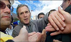 The picture of George Bush, the morning of that terrible tragedy, is the picture of a man of conflicting emotions, as if he is being simultaneously congratulated and admonished -- perhaps by his father, for running away. There is no sign of sadness on the face of George Bush. There is no sign of compassion or concern for those who died. As he later admitted to reporters, he thought only of his own safety, and that of his own family (2). And now, his safety assured, he is smirking. Is it possible that Bush would gloat over the death of others? Is it possible that George Bush would derive pleasure from causing death? The answer is yes. While Bush served as Governor of Texas, he oversaw a penal system that became, under his administration, a veritable assembly-line death machine. Bush took a perverse delight in killing people. He enjoyed executing the retarded, the abused, those with severe learning disorders, and men with histories of alcoholism and drug abuse -- men just like George Bush. Bush joked about killing people. He mocked them. Laughed at them. Killing his fellow man, killing old women, gave George Bush a perverse pleasure. In Texas he killed over 150 of them -- and it made him feel good! In November of 2001, just weeks following the 9/11 tragedy, as he presided over the annual pardoning of the White House turkey, George W. Bush made yet another a joke about killing people: "It's nice to finally get a chance to issue a pardon. Unfortunately, I was unable to give any out in Texas. You know how it is, you pardon one and then everyone has a sob story about how they were abused as kids, or were under the influence of drugs or alcohol, or they're retarded or dyslexic, stuff like that. My philosophy was not to discriminate. We killed everyone of them when I was governor." Texas death row inmate, Karla Faye Tucker, a grandmother and "born again Christian" hoped that George W. Bush, a man who claims his "favorite philosopher is Jesus Christ" might act mercifully and save her from death. When asked by Talk magazine what she might like to say to Governor Bush?" she replied, "Please don't kill me." George Bush thought this was funny. He mocked her. He laughed at her, just like he mocked and laughed at all the others who were killed by the state of Texas when he was governor. Bush thought her request was so hilarious, that he went on the popular Larry King talk show and publicly ridiculed her by laughing and whimpering in mock imitation of her voice: "Please! Don't kill me!" That many of those Bush ordered killed were completely innocent, is probably beyond dispute. Dozens of people sentenced to death in recent years have subsequently been found to be innocent, based, for example, on DNA evidence. Dozens of innocent men have been released from death row and prison, after prosecutorial and police misconduct and evidence tampering were made public. Between 1900 and 1992, there have been 416 documented cases of innocent persons who have been convicted and given a death sentence. In 23 of these cases, the person was executed (8). According to Amnesty International, "since 1973, over 100 people have been released from death rows throughout the country after evidence of their wrongful convictions emerged." While Bush was laughing about killing people, Illinois Governor George Ryan -- a pro-death penalty Republican and Bush's campaign chairman in Illinois -- called a moratorium on executions. Ryan issued this order in January 2000 after 13 condemned men were exonerated by DNA evidence. In Illinois and other states including Texas, there was growing evidence that innocent people were being sent to death row. Calvin Burdine, spent 16 years on death row in Texas before a federal judge threw out his conviction. Randall Dale Adams and Clarence Brandley, two former Texas prisoners came within days of being executed before they were exonerated and freed. Dozens of other Texas inmates were not so lucky. Texas, under George Bush, was a veritable death machine that gloried in denying legal rights and competent legal counsel to the accused. In Texas, under Bush, only the wealthy could receive a "fair trial." One federal judge, after hearing cases in which court -appointed attorneys slept in court or abused cocaine, called the Texas system a "farce" and a "travesty." In 1998, while George Bush was still governor of Texas, Amnesty International reported that "at every step in the death penalty process in Texas, a litany of grossly inadequate legal procedures fail to meet recognized minimum international standards for the protection of human rights." When asked about the Texas death machine and Karla Faye Tucker's plea for clemency, on the David Letterman TV show, Bush again laughed it up: "People like that make me sick." Pleas for mercy, make George W. Bush sick. People about to be put to death, make George W. Bush laugh. George Bush was still laughing it up, on the morning of 9/11. WE WON At 10 am, that nightmarish September 11 morning, a jet soared above the clouds, a thousand miles from the raging fires that burned in New York city. Inside that jet stood a smirking man. And in that moment of triumph, his picture was taken -- which would later be sold and distributed to his supporters. The picture was of George Bush as he spoke by phone to Dick Cheney. And what were they talking about? "We were concerned about threats to the President." A picture says a thousand words. There is no sign of sadness on the smirking face of George W. Bush. There is no sign of compassion or concern for those innocent women and men who burned to death or who fell a thousand feet and died. There is not a hint of sympathy for the thousands of grieving families, for the wives, sons, mothers, fathers, husbands daughters, or friends of those who died. As he later admitted, he thought only of his own safety and that of his family. And now, safe at last, although there is fear in his face, he is smirking. -- what a hero! A picture says a 