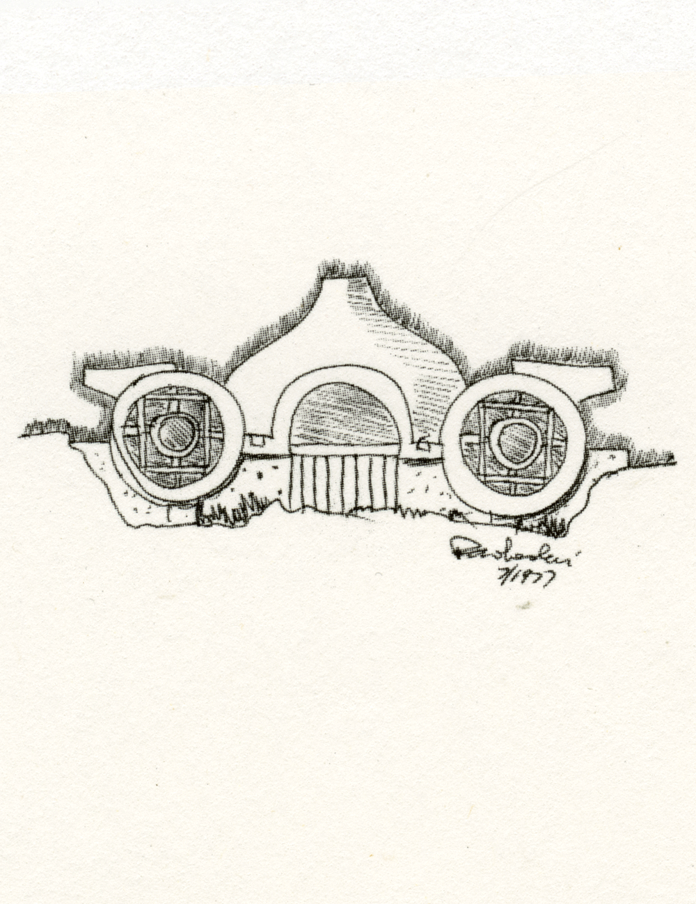 4 For about 35 years (the Cosanti Foundation was established in 1965), we have been practicing within the "lean economy" boundaries. In the meantime, Cosanti and Arcosanti, a fragment of it, have been constructed, which suggests that a dignified, convivial, and often fulfilling life can be pursued, even in this country, on an economic base that may be more in tune with the condition of man and the status of the biosphere. But frugality is not just a necessity, it is also the virtue of interiorization, which in turn is the essence of life: reality made into persona. Let's remember that each person is a superb example of matter (space) organizing itself into astonishingly complex patterns, the whole 100-200 pounds of it, of immense economy and interiority. From some of the experiences lived at Arcosanti, we can move on by expanding the "instrument" into a tangible place of life and all the operations life is made of. With the assistance of academia and of the marketplace, we may surprise ourselves with a pattern of life of great richness but lean, and approximating an equity applicable to society at large, the have-not societies included.