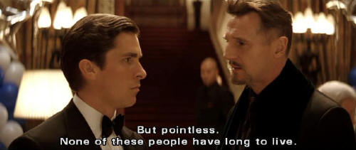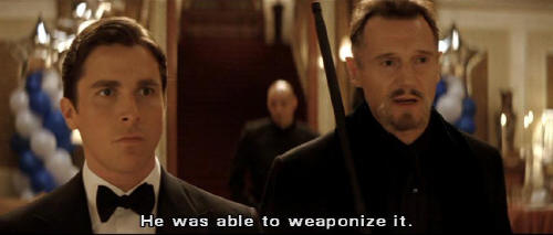 Ra's: Amusing. But pointless. None of these people have long to live. Your antics at the asylum have forced my hand. Bruce: So Crane was working for you. Ra's: His toxin is derived from the organic compound found in our blue flowers. He was able to weaponize it.