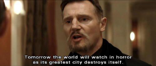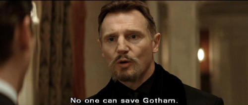 It should be you standing by my side, saving the world. Bruce: I'll be standing where I belong. Between you and the people of Gotham. Ra's: No one can save Gotham. When a forest grows too wild, a purging fire is inevitable and natural. Tomorrow the world will watch in horror as its greatest city destroys itself. The movement back to harmony will be unstoppable this time.