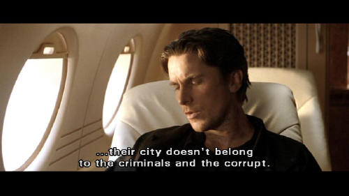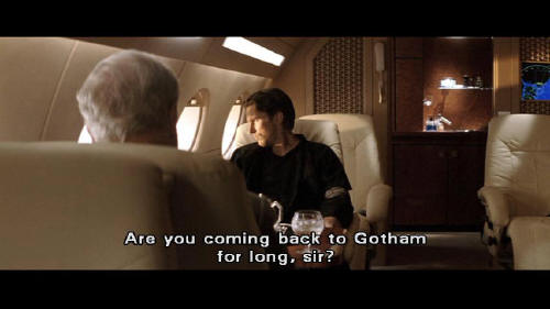 Apart from the mud. Are you coming back to Gotham for long, sir? [Bruce] As long as it takes. I want to show the people ... their city doesn't belong to the criminals and the corrupt. [Alfred] In the depression, your father nearly bankrupted Wayne Enterprises ...