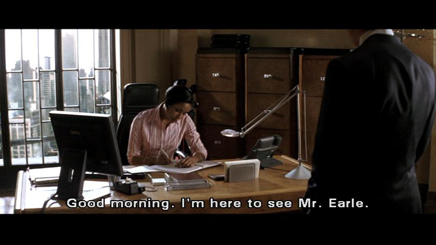 Yes, he's confirmed for the dinner tomorrow evening. [Bruce] Good morning. I'm here to see Mr. Earle. [Secretary] Name? [Bruce] Bruce Wayne. [Earle] Thomas would probably not have taken the company public.