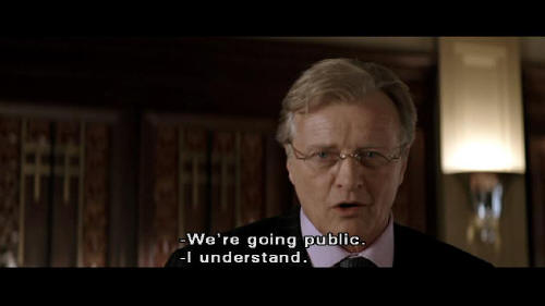 Too many wheels turning. We're going public. [Bruce] I understand. And I'll be handsomely rewarded for my shares. I'm not looking to interfere. I am looking for a job. [Earle] Oh? [Bruce] I just want to get to know the company that my family built. [Earle] Any ideas where you would start?