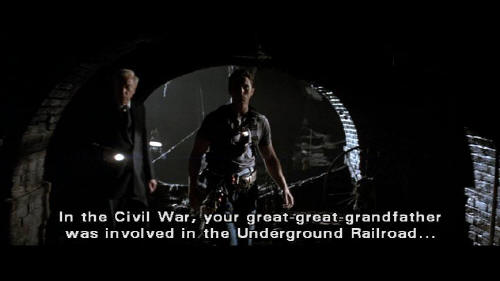 In the Civil War, your great-great-grandfather was involved in the Underground Railroad ... secretly transporting freed slaves to the North ... and I suspect these caverns came in handy. [Bruce] Alfred! Come up here!