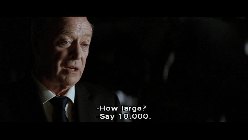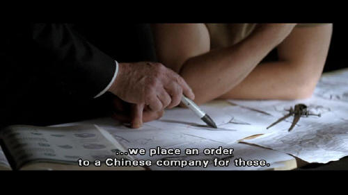 [Alfred] Indeed. And then, quite separately ... we place an order to a Chinese company for these. [Bruce] Put it together ourselves. [Alfred] Precisely. They'll have to be large orders, to avoid suspicion. [Bruce] How large? [Alfred] Say 10,000. [Bruce] Well, at least we'll have spares. [Alfred] Yes.
