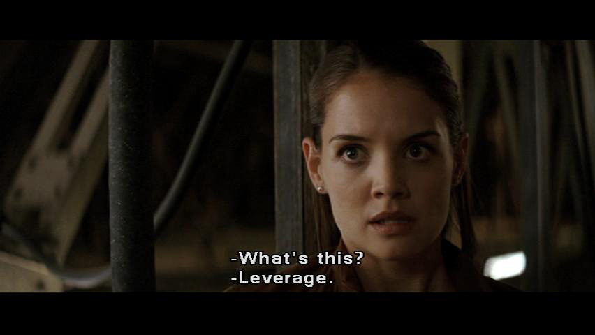 [Batman] Falcone sent them to kill you. [Rachel] Why? [Batman] You rattled his cage. [Rachel] What's this? [Batman] Leverage. [Rachel] For what? [Batman] To get things moving. [Rachel] Who are you?