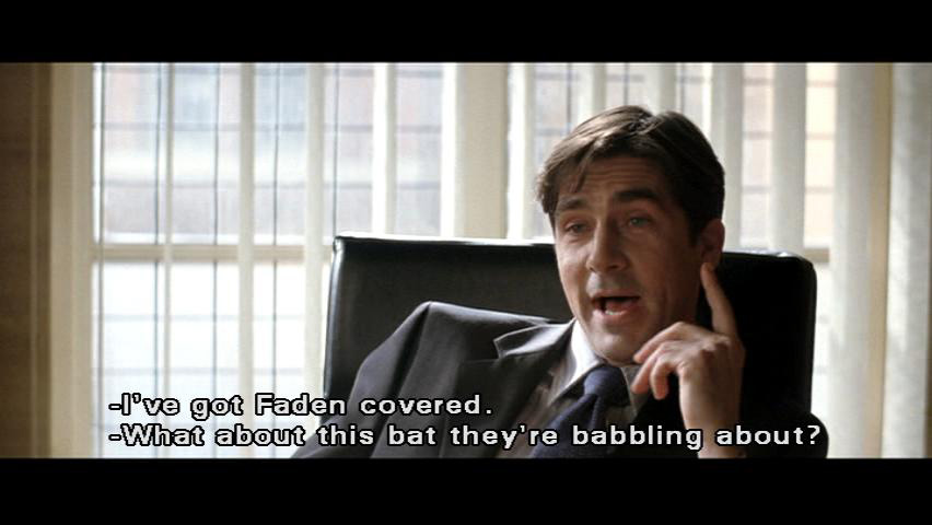[Rachel] I've got Faden covered. [Finch] What about this bat they're babbling about? [Rachel] Even if these guys will swear to being thrashed by a giant bat ... we've got Falcone at the scene. Drugs, prints, cargo manifests. This bat character gave us everything. [Finch] Okay. Let's do it.