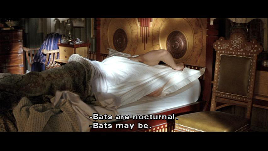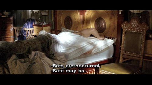 [Bruce] Bats are nocturnal. [Alfred] Bats may be. But even for billionaire playboys, 3:00 is pushing it. The price for leading a double life, I fear. Your theatrics made an impression.