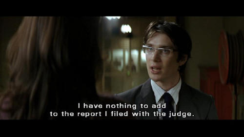 I have nothing to add to the report I filed with the judge. [Rachel] I have questions about your report. [Crane] Such as? [Rachel] Isn't it convenient for a 52-year-old man who has no history of mental illness ... to suddenly have a psychotic breakdown just when he's about to be indicted? [Crane] Well, as you can see for yourself, there is nothing convenient about his symptoms. [Falcone] Scarecrow. [Rachel] What's "scarecrow"?