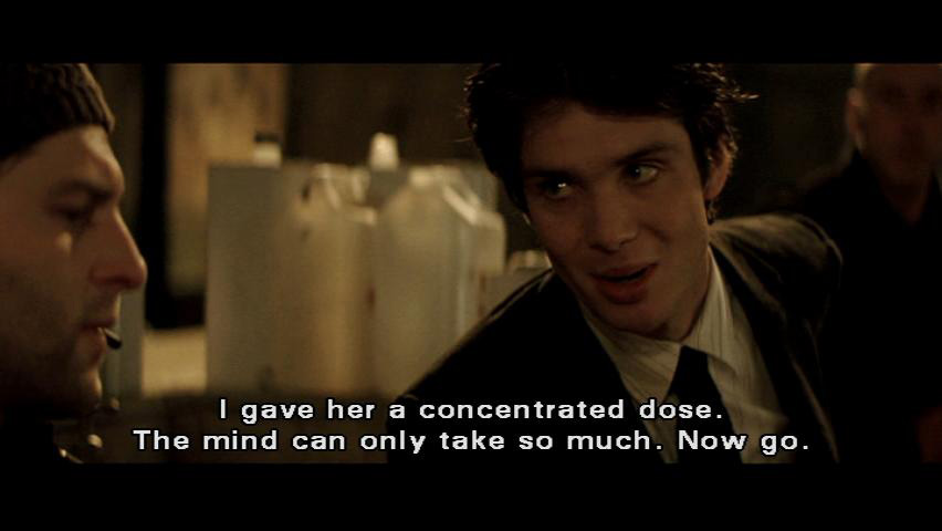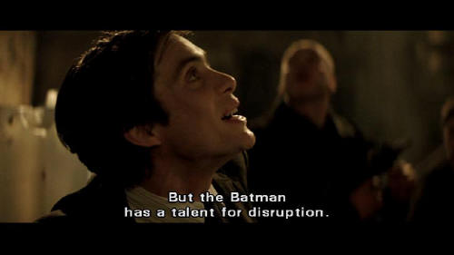 But the Batman has a talent for disruption. Force him outside, the police will take him down. Go. [Thug] What about her? [Crane] She hasn't got long. I gave her a concentrated dose. The mind can only take so much. Now go. [Thug] The things they say about him. [Thug] I heard he can disappear.