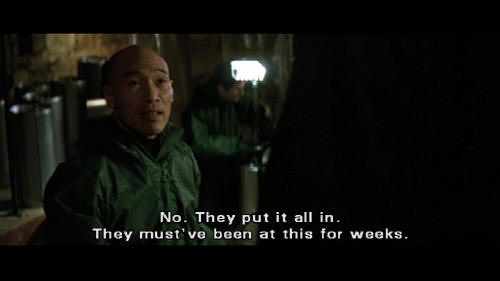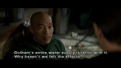 [Gordon] They get any of this crap into the mains? [Technician] Yeah. [Gordon] Notify the water company. There's gotta be a way to isolate it. [Technician] No. They put it all in. They must've been at this for weeks. Gotham's entire water supply is laced with it. [Gordon] Why haven't we felt the effects?