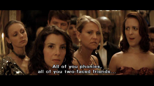 To all of you ... All of you phonies, all of you two-faced friends ... you sycophantic suck-ups who smile through your teeth at me ... please, leave me in peace. Please go.