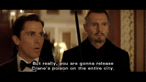 [Henri] Of course not. He thought our plan was to hold the city to ransom. [Bruce] But really, you are gonna release Crane's poison on the entire city. [Henri] Then watch Gotham tear itself apart through fear.
