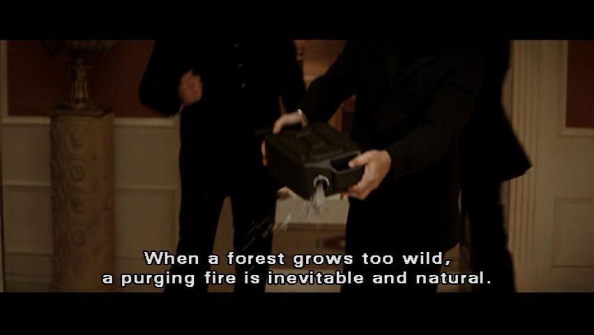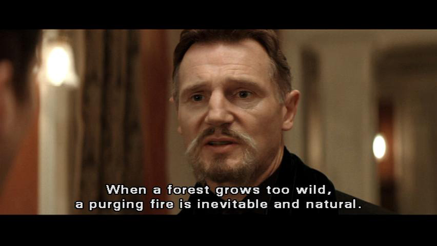 When a forest grows too wild, a purging fire is inevitable and natural. Tomorrow the world will watch in horror as its greatest city destroys itself. The movement back to harmony will be unstoppable this time. [Bruce] You attacked Gotham before/ [Henri] Of course. Over the ages our weapons have grown more sophisticated.