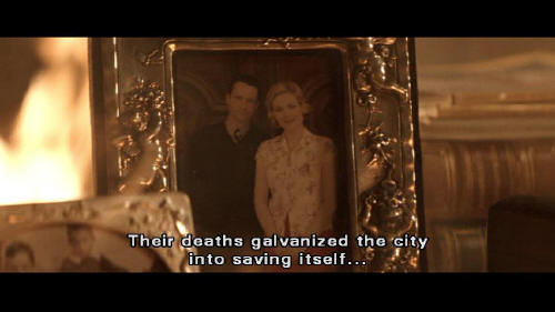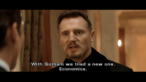 With Gotham we tried a new one. Economics. But we underestimated certain of Gotham's citizens ... such as your parents. Gunned down by one of the very people they were trying to help. Create enough hunger and everyone becomes a criminal. Their deaths galvanized the city into saving itself ... and Gotham has limped on ever since.