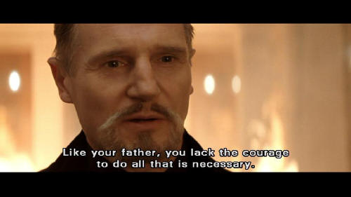 We are back to finish the job. And this time no misguided idealists will get in the way. Like your father, you lack the courage to do all that is necessary. If someone stands in the way of true justice ... you simply walk up behind them and stab them in the heart.