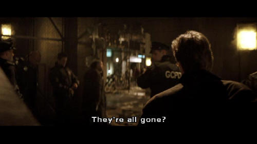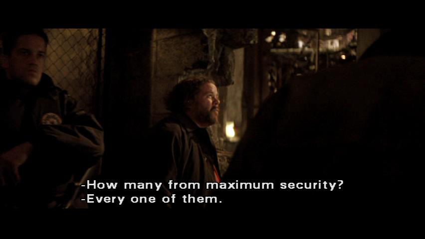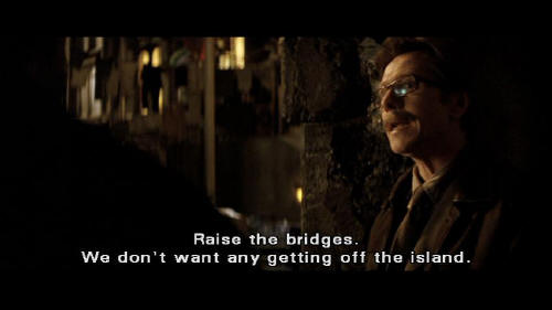 [Gordon] They're all gone? How many from maximum security? [Flass] Every one of them. Serial killers, rapists. [Gordon] Raise the bridges. We don't want any getting off the island. [Flass] Yeah, I'll raise the bridges ...