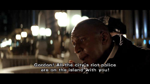 [Gordon] We need reinforcements. TAC teams, SWAT, riot cops! [Loeb] Gordon! All the city's riot police are on the island with you! [Gordon] Well, they're completely incapacitated! [Rachel] It's okay, it's okay. No one's gonna hurt you. [Crane] Of course they are! [Rachel] Crane? [Crane] No. Scarecrow.