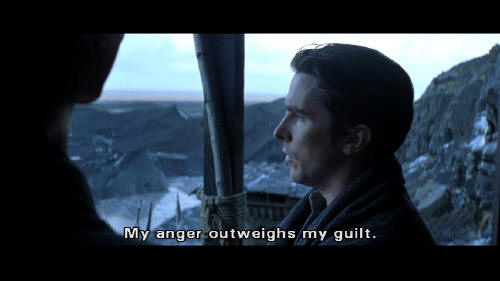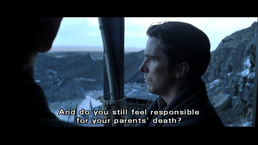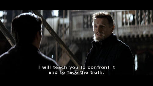 [Henri] And do you still feel responsible for your parents' death? [Bruce] My anger outweighs my guilt. [Henri] Come. You have learned to bury your guilt with anger. I will teach you to confront it and to face the truth. You know how to fight six men. We can teach you how to engage 600.
