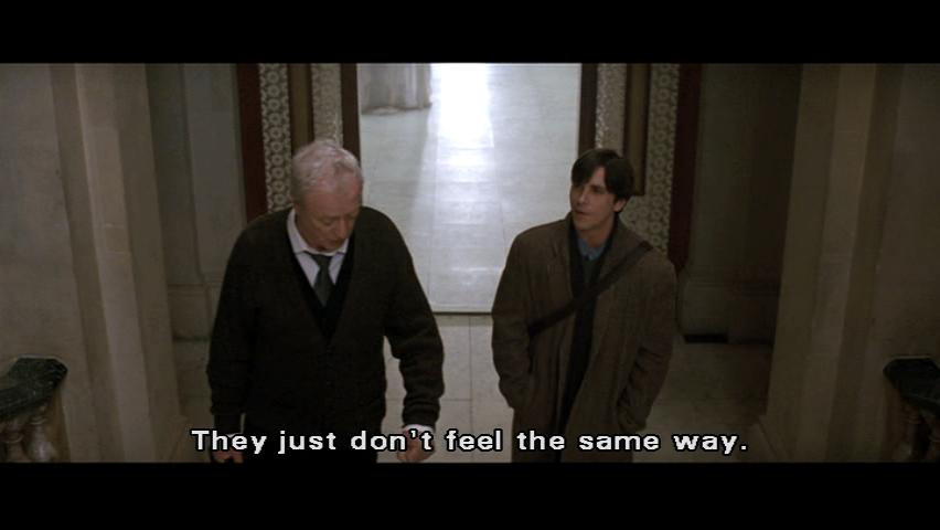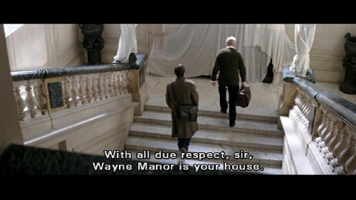 or can I persuade you to stay on for a day or two? [Bruce] I'm not heading back at all. [Alfred] You don't like it there? [Bruce] I like it fine. They just don't feel the same way. [Alfred] I've prepared the master bedroom. [Bruce] No. My room will be fine. [Alfred] With all due respect, sir, Wayne Manor is your house.