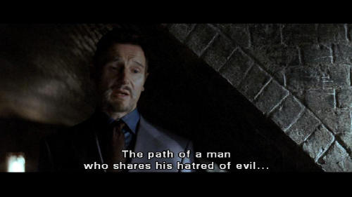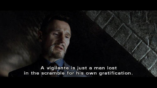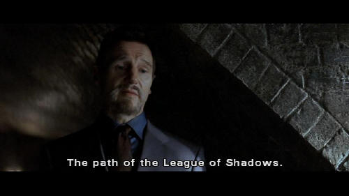 [Henri] The path of a man who shares his hatred of evil ... and wishes to serve true justice. The path of the League of Shadows. [Bruce] You're vigilantes. [Henri] No, no, no. A vigilante is just a man lost in the scramble for his own gratification. He can be destroyed or locked up. But if you make yourself more than just a man ...