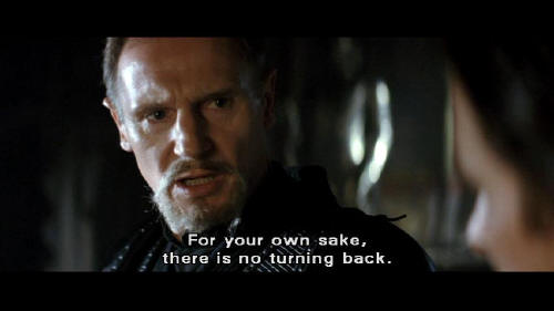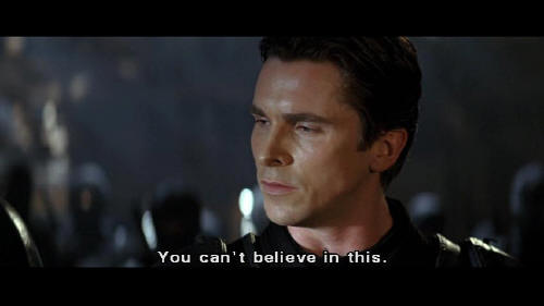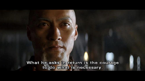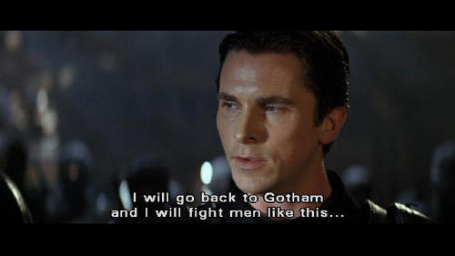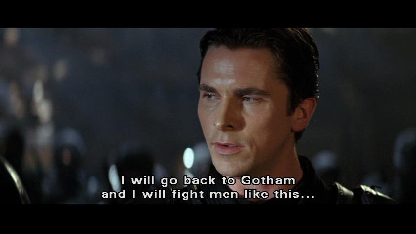 [Bruce] You can't believe in this. [Henri] Ra's al Ghul rescued us from the darkest corners of our own hearts. What he asks in return is the courage to do what is necessary. [Bruce] I will go back to Gotham and I will fight men like this ... but I will not become an executioner. [Henri] Bruce, please. For your own sake, there is no turning back.