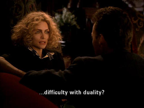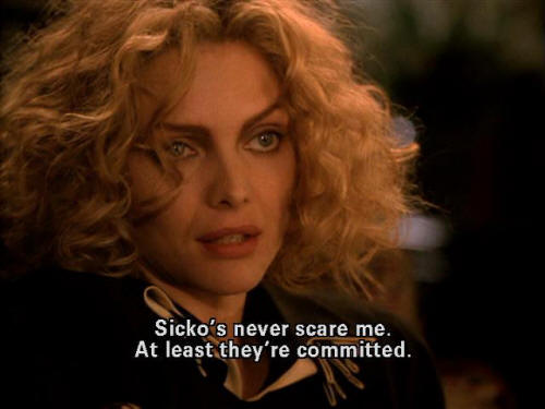 [Penguin] Nice kitty. [Bruce] There are two truths ... [Selina] ... difficulty with duality? [Selina] It's the so-called normal guys who always let you down. [Selina] Sicko's never scare me. At least they're committed.