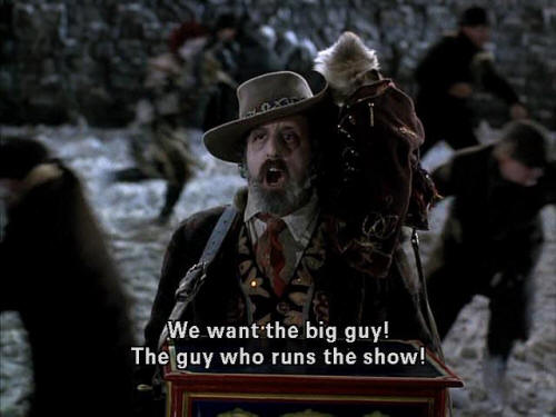 [Organ Grinder] We want the big guy! The guy who runs the show!
