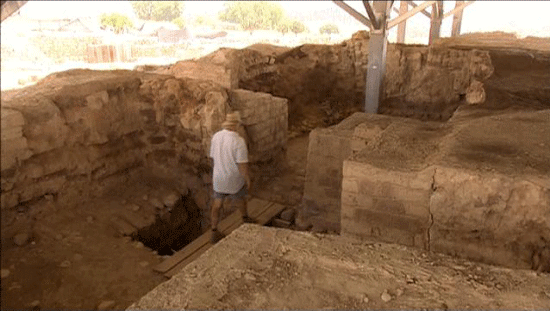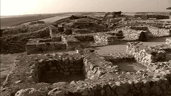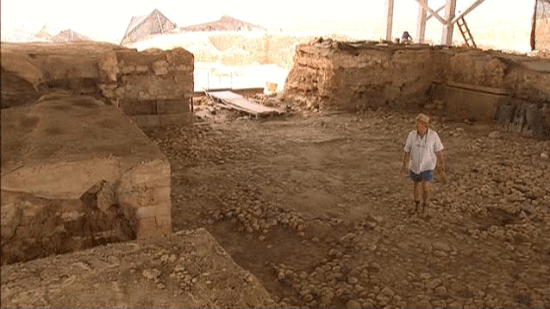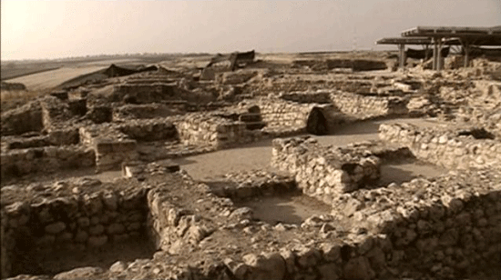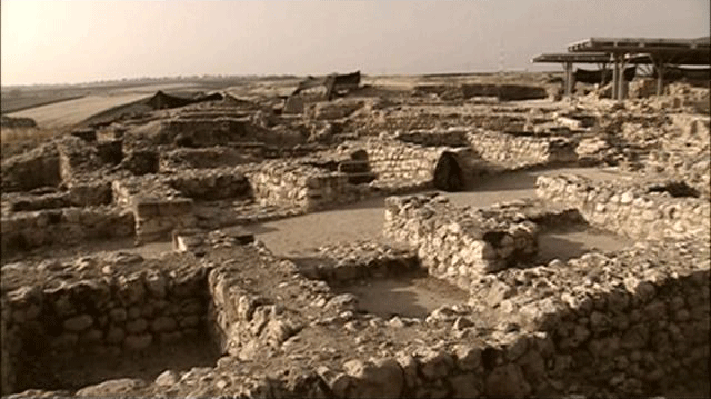 Look at what is happening on the walls. See the ashes? See the wood? Size of the timber? Here. On the walls. Wherever you look, wherever you go, same signs of destruction. [Narrator] These layers of destruction appear to provide tangible evidence of the conquest of Canaan by the armies of Joshua. Given THE MOOD of 1950s Israel, just after the country's independence, this HYPOTHESIS supported the idea that THE BIRTH OF A NATION HAD TO BE PRECEDED BY A MILITARY CONQUEST. [Government Propagandist] "Joshua's destruction of Hazor, the great city of north Canaan referred to in the Bible,