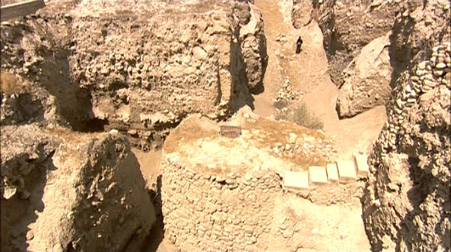Everyone is familiar with the method that was used to cause the walls of the city to come tumbling down: the famous trumpets of Jericho. "Go 'round the city seven times, and the priests shall blow the trumpets. When you hear the sound of the trumpet, all the people shall shout with a great shout, and the walls of the city shall fall flat down." Tell es-Sultan, Jericho Basing themselves on the Bible, the first researchers believed that some of the remains that were discovered here were those of the city destroyed during the attack by the Israelite armies.