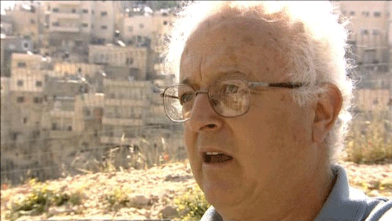 In the late Bronze Age and in the early Iron Age, there is human activity here; there's human occupation here, ON A VERY SMALL SCALE. [Israel Finkelstein] The way I see it, there was a village here in the 10th century, but it was a small one, MAINLY ON THIS PART of the ridge of the city of David, NOT ALL ALONG THE RIDGE, and with a very limited population, NOT FORTIFIED AND WITH NO MONUMENTS. [Ronny Reich, University of Haifa] Well, I agree that it was a very small place. Iron Age Jerusalem was a very small place. And this does not agree -- archaeology and text describe two different natures of sites. Not the existence, but the natures of sites. [Narrator] Unlike the GREAT CITY of the 7th Century, David's [?] Jerusalem was a simple mountain village covering 3-4 hectares.