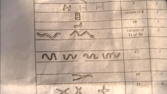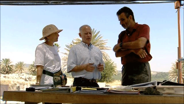 [Neil Silberman] DESPITE the Biblical EVIDENCE [?] ? [Israel Finkelstein] Of course. There's no evidence for a great Solomonic capital, ruling over a great state, rich state and so on. And here at Megiddo, the buildings, the monumental buildings which had been described as the symbol of Solomonic greatness, in fact date a bit later. They don't date to the time of Solomon. They don't date to the 10th century. SO WE ARE IN A SITUATION OF COMPLETE NEGATIVE PICTURE, NEGATIVE EVIDENCE FROM COAST TO COAST. [Neil Silberman] And yet there are magnificent buildings here, and the question is: "What kingdom were they related to?" [Israel Finkelstein] Yeah, they are dated a bit later, I think. But the question again is what's going on in the 10th century? [Neil Silberman] We have a real historical problem here. We'll have to come up with another explanation. [Narrator] As often happens in such cases, JUST AS UNCERTAINTIES REACH THEIR CLIMAX, A NEW CLUE was discovered. Norma Franklin has been part of the Megiddo expedition for years. She noticed that the stonework of a palace that Yadin attributed to Solomon displayed very unusual masons marks. She looked through the records and reports of old excavations to find out if similar masons marks were to be found elsewhere.